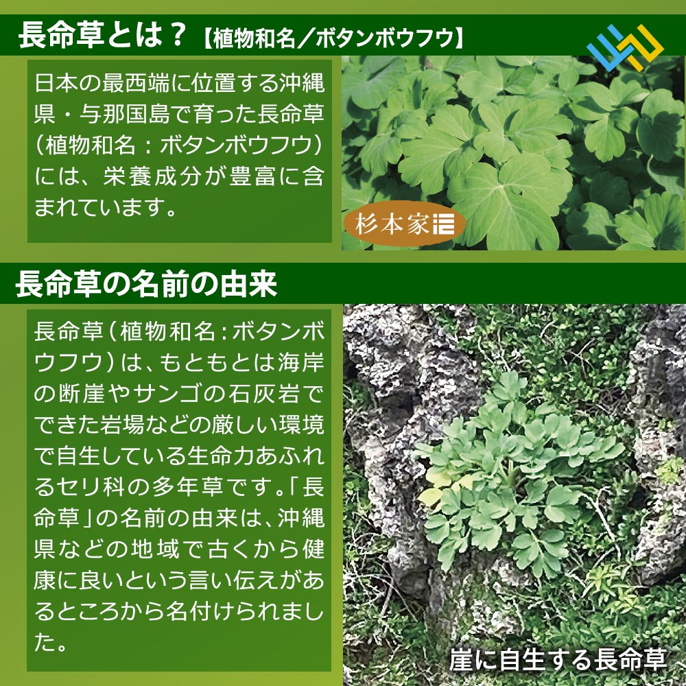- ● 沖縄県与那国島産長命草(ボタンボウフウ)配合