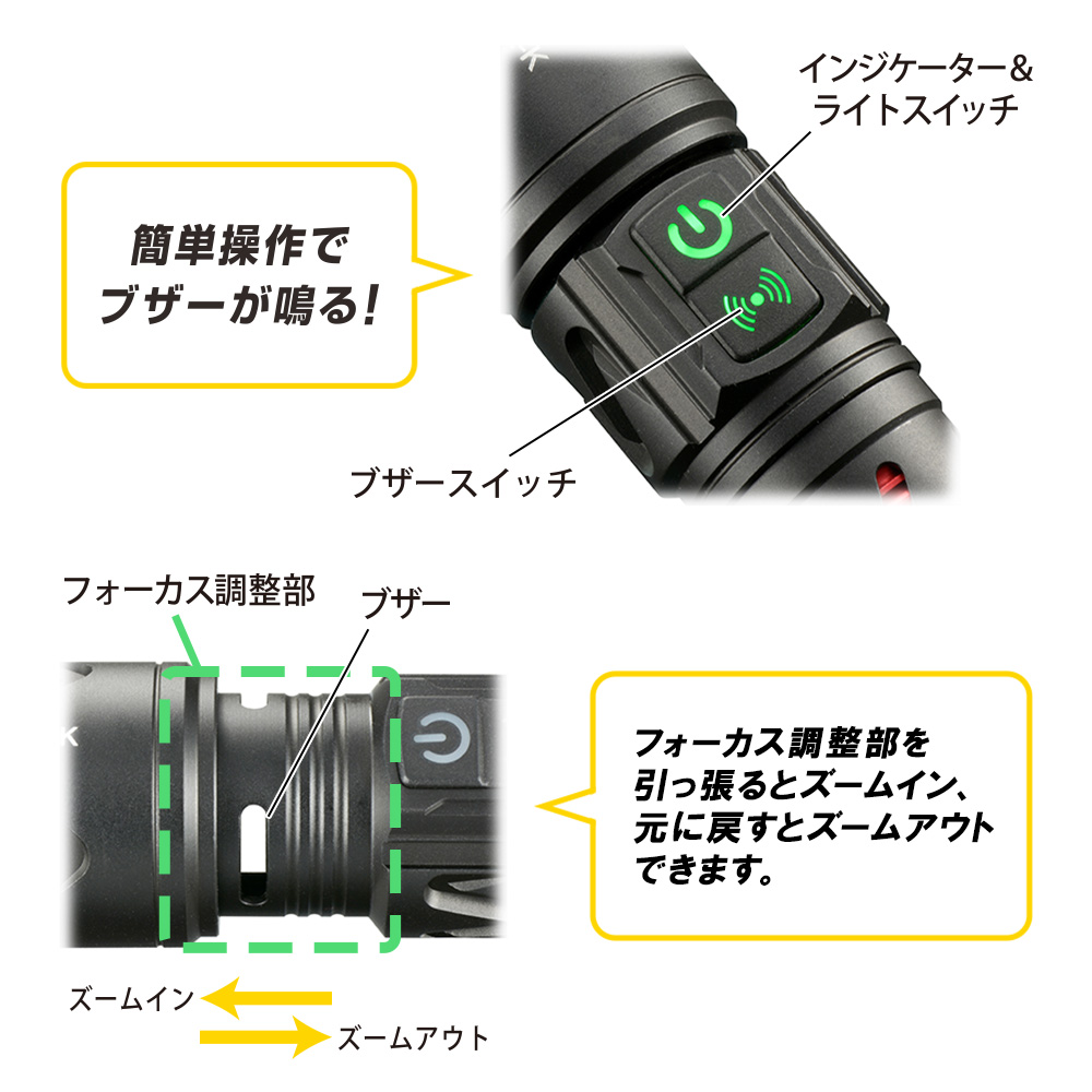 ※ 本製品は、大音量で相手を威嚇するためのもので、犯罪を防止するものではありません。