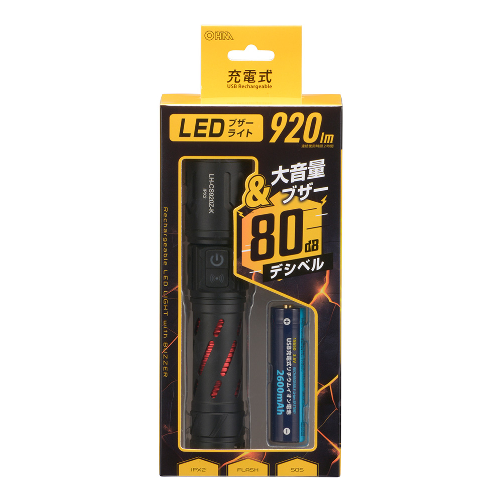 - ● 明るさ(High)920 lm、連続使用時間 約2時間