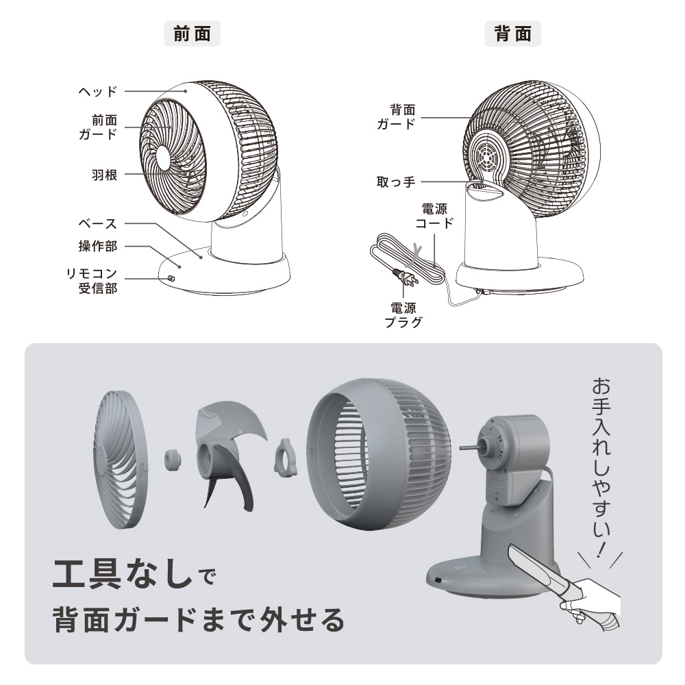 - ● 工具なしで背面ガードまで外せて、お手入れしやすい