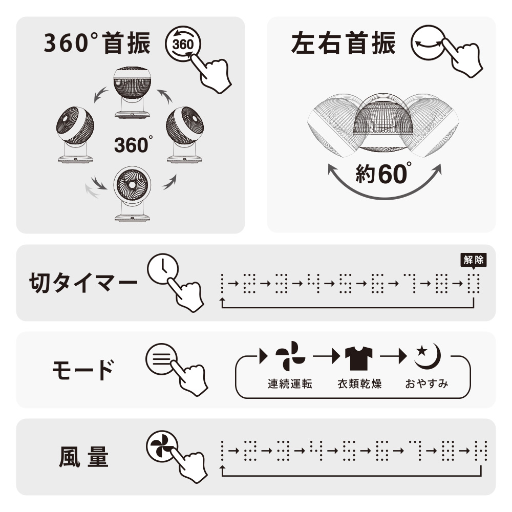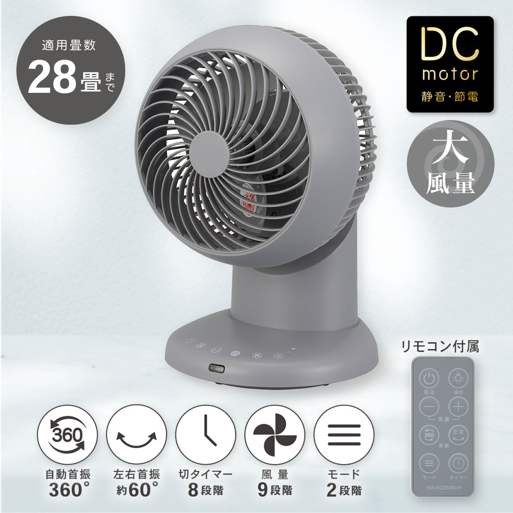 360°サーキュレーター DC 28畳まで グレー [品番]08-3341