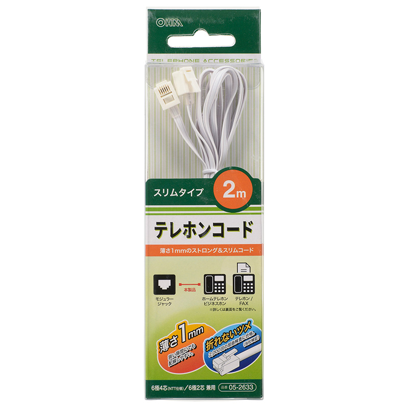 - ● 厚さ1mmながら通常の電話コードよりもタフな、スリムタイプのテレホンコード