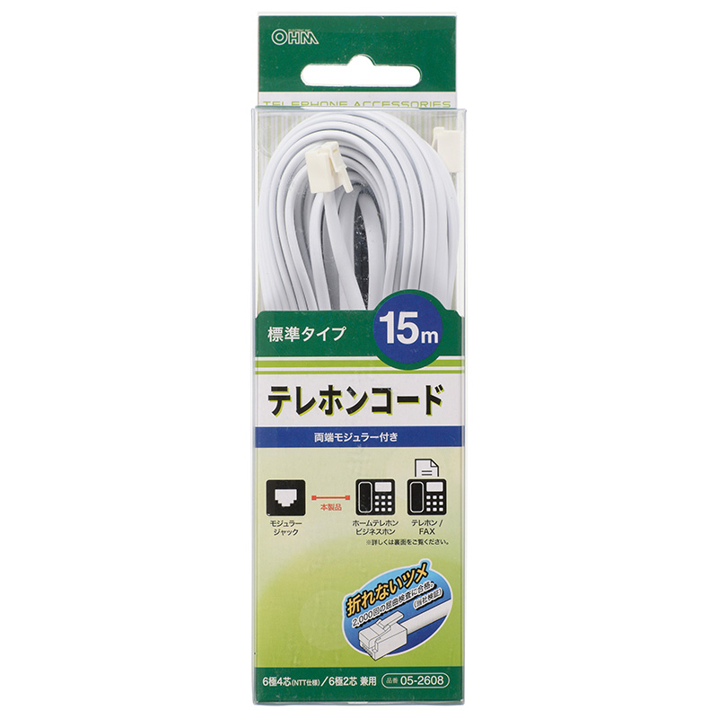 テレホンコード 標準タイプ ホワイト 30m [品番]05-2610