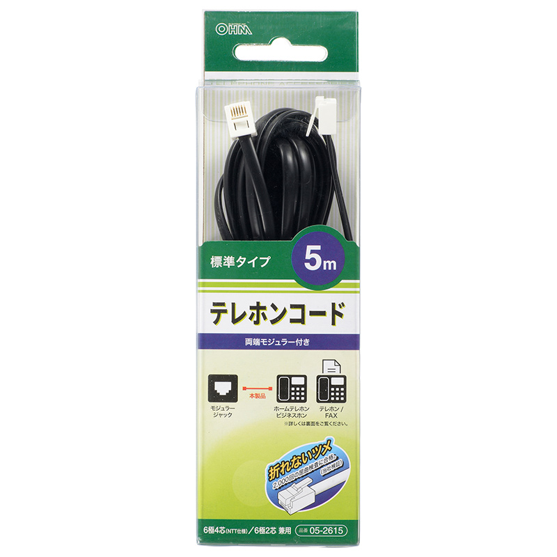テレホンコード 標準タイプ ブラック 15m [品番]05-2618 - 販売終了