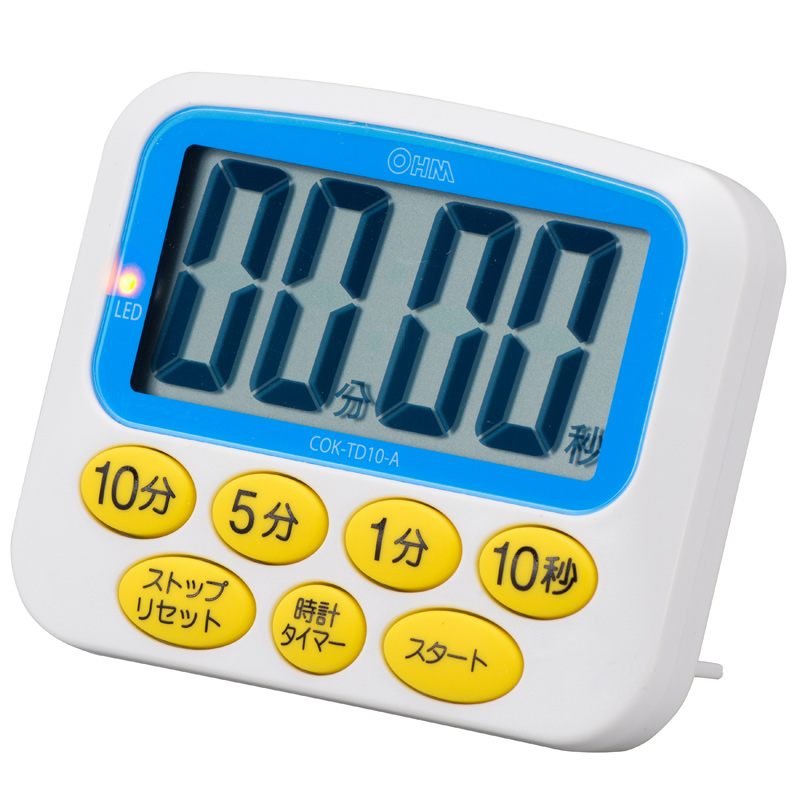 - ● 音だけでなくLEDランプでもお知らせするデジタルタイマーです。