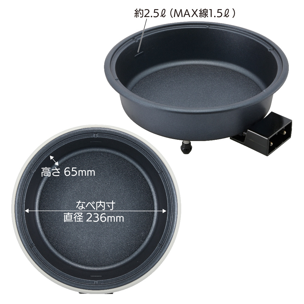 ■ 満水容量:約2.5リットル(MAX線1.5リットル)