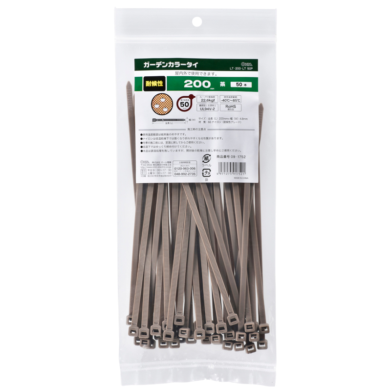 ガーデンカラータイ 耐候性 200mm 50本入 茶 [品番]09-1752
