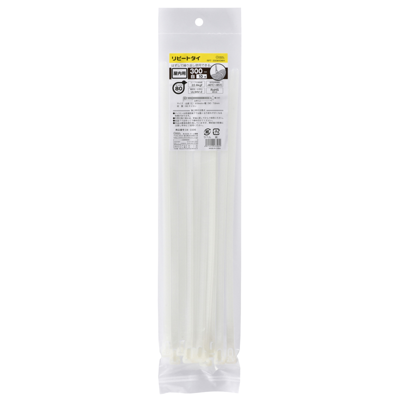 リピートタイ 屋内用 300mm 10本入 白 [品番]04-3306