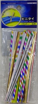■ サイズ:長さ12cm ■ たばねる対象物の寸法の目安:直径約25mmまで ■ 50本入り(金、銀、シマ模様など)