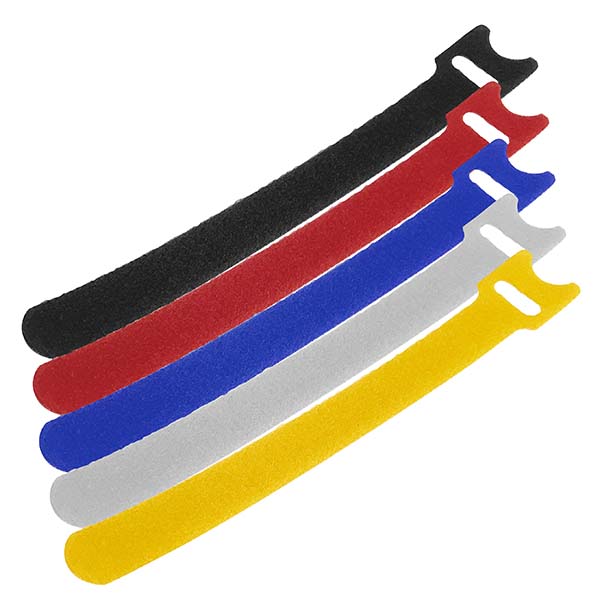 ■ 幅13mm×長さ135mm ■ 材質 フック:ポリプロピレン ループ:ナイロン ■ 5本入り(黒、赤、青、白、黄、各1本)