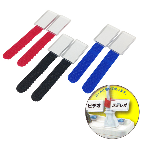 ■ 幅12mm×長さ90mm ■ ネーム寸法:15mm×30mm ■ 材質: テープ:ナイロン タグ:PVC ■ 6本入り(赤、黒、青、各2本)