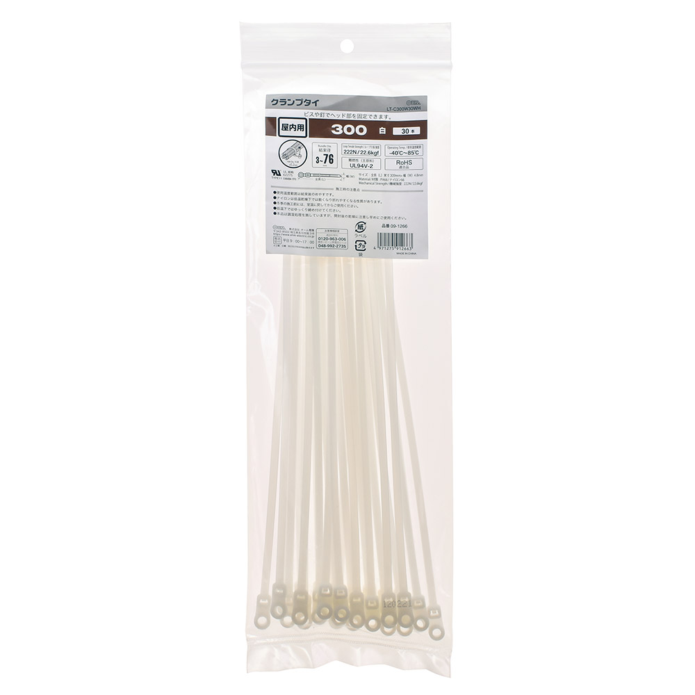 クランプタイ 屋内用 300mm 30本入 白 [品番]09-1266