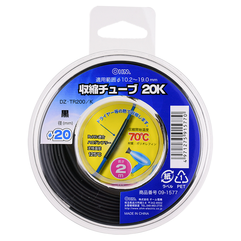 収縮チューブ φ20.0mm 2m 黒 [品番]09-1577