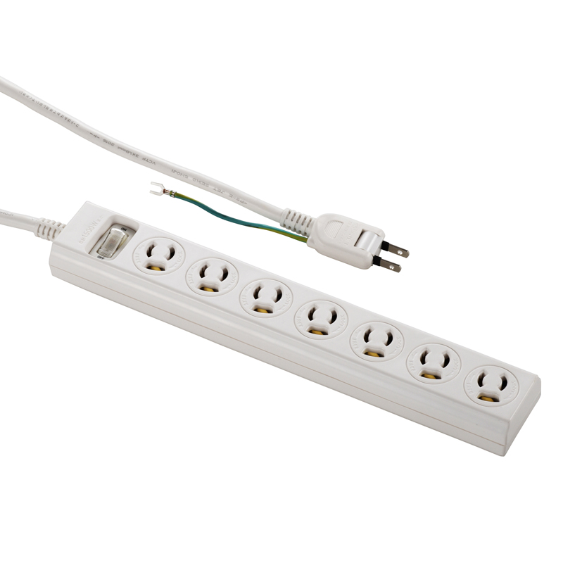 - 電源タップ 抜け止め 3ピンプラグ対応 アース付 雷ガード 7個口 3m [品番]00-2800