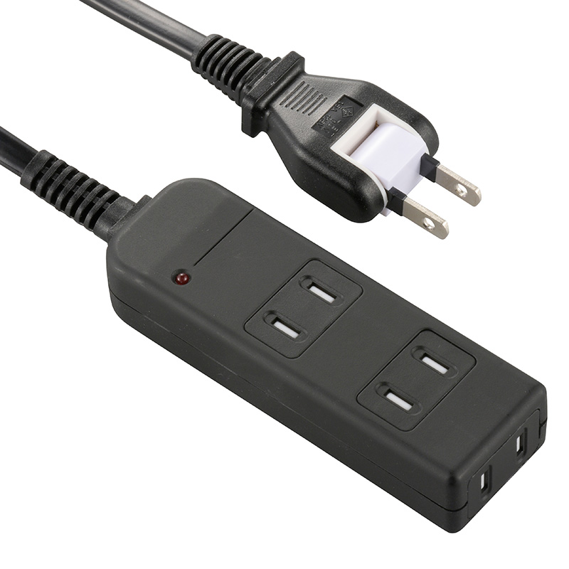 - 雷に強い安全タップ 3個口 2m 黒 [品番]00-6957