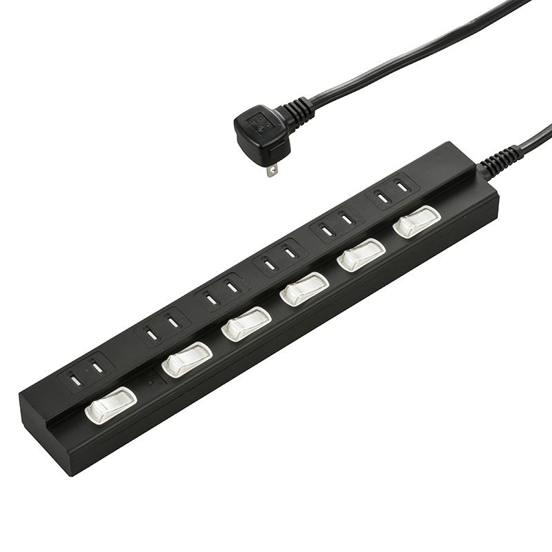 雷に強い節電タップ 6個口 1m 黒 [品番]00-6944