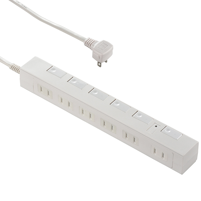 - 雷に強いスリム節電タップ 6個口 1m 白 [品番]00-6936