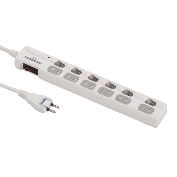 - 雷ガード&ブレーカー/LED個別スイッチ付き 節電タップ 6個口 1.5m [品番]00-1955