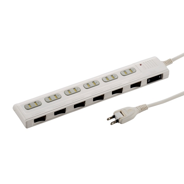 - 雷ガード&ブレーカー/個別スイッチ側面タイプ付き 薄型節電タップ 6個口 2m [品番]00-1239