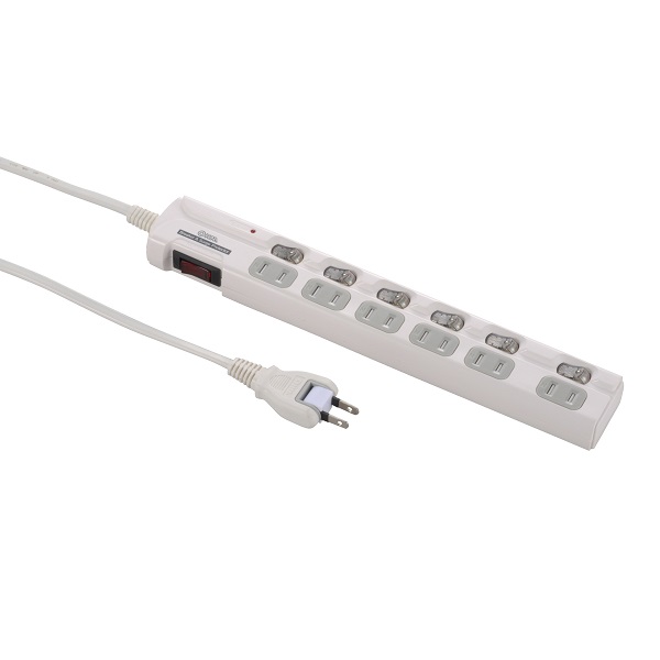 - 雷ガード&ブレーカー/LED個別スイッチ付き 節電タップ 6個口 5m [品番]00-1980