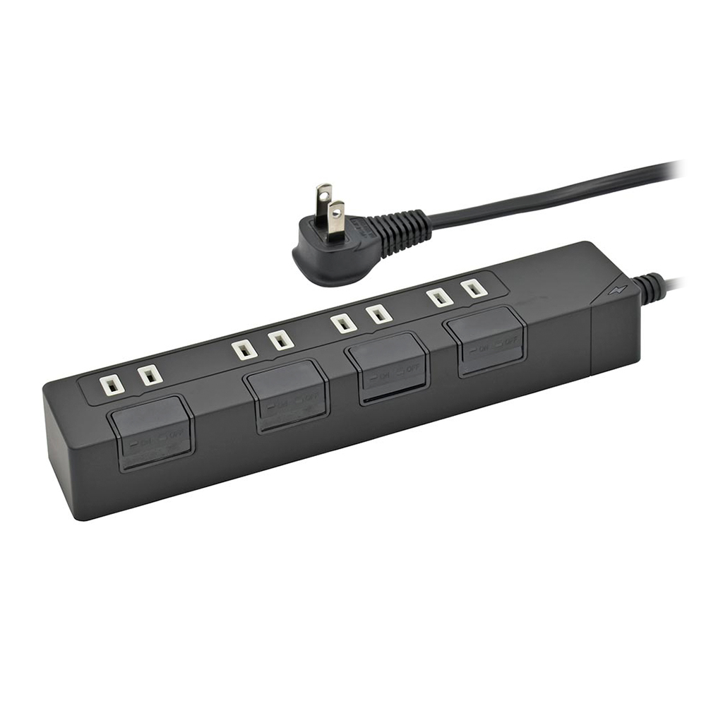 - 4個口タップ 雷ガード/個別スイッチ 2m 黒 [品番]00-1023