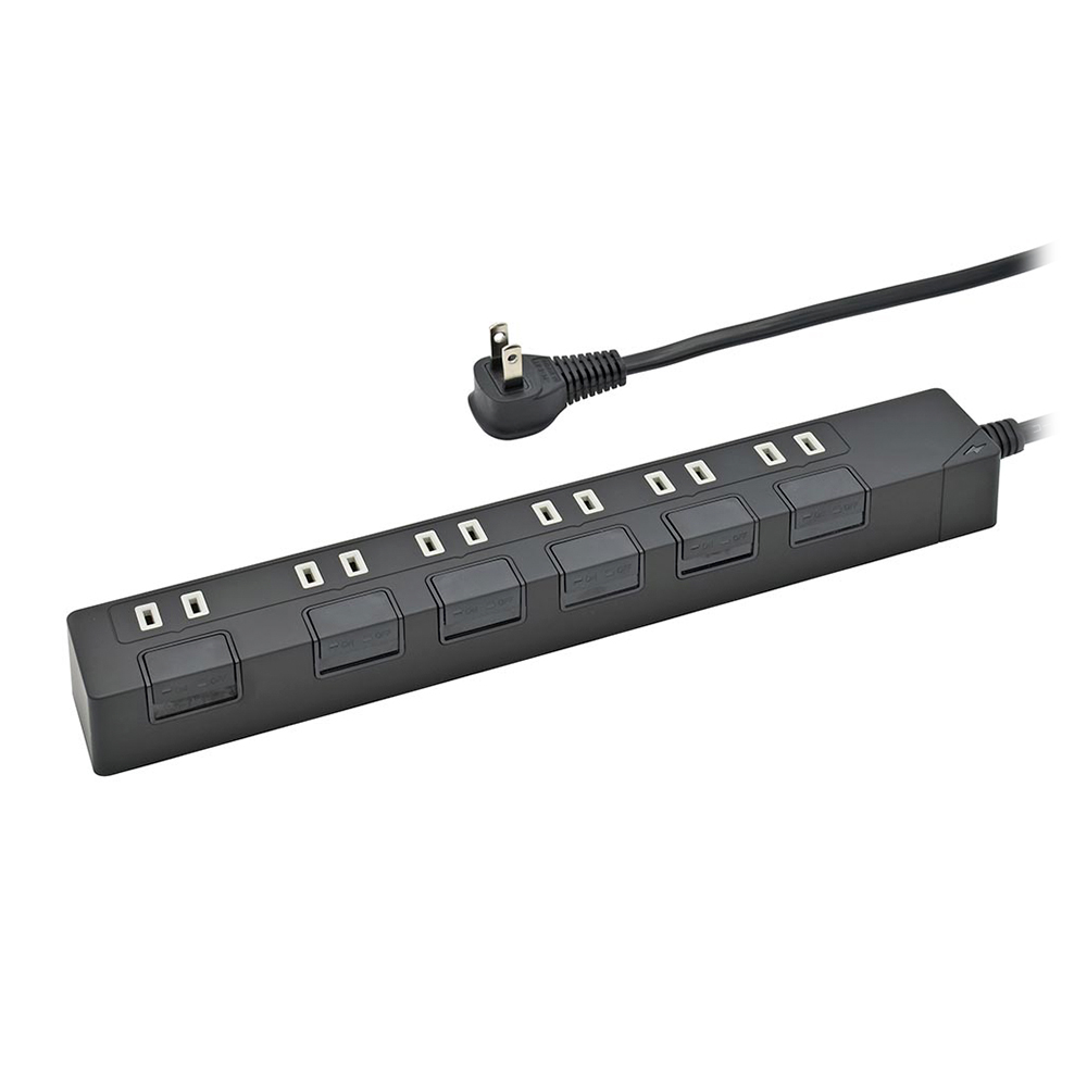6個口タップ 雷ガード/個別スイッチ 1m 黒 [品番]00-1024