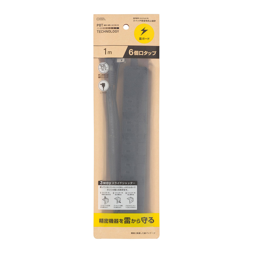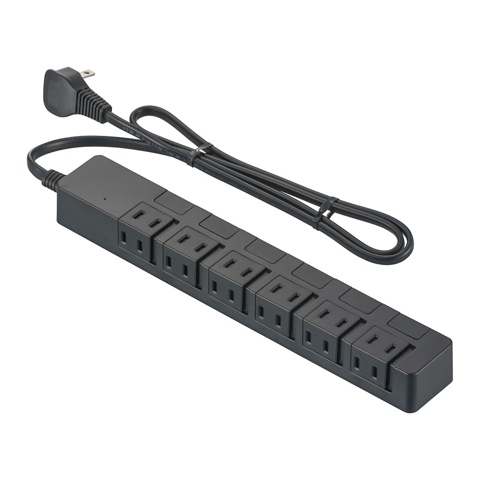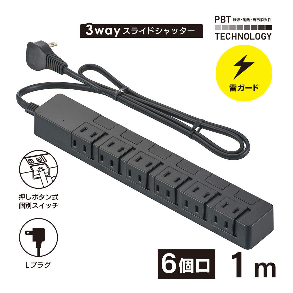 - 雷ガード付き電源タップ 6個口 1m?黒 [品番]00-1662