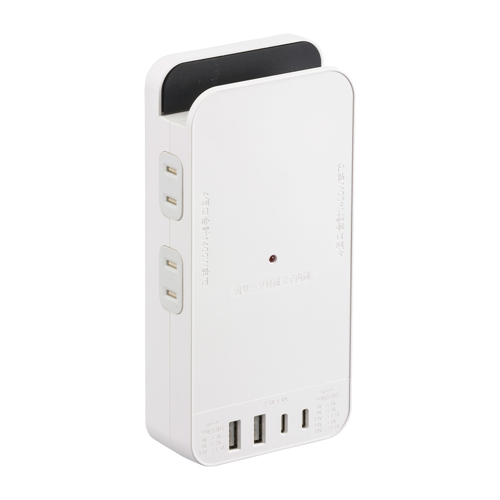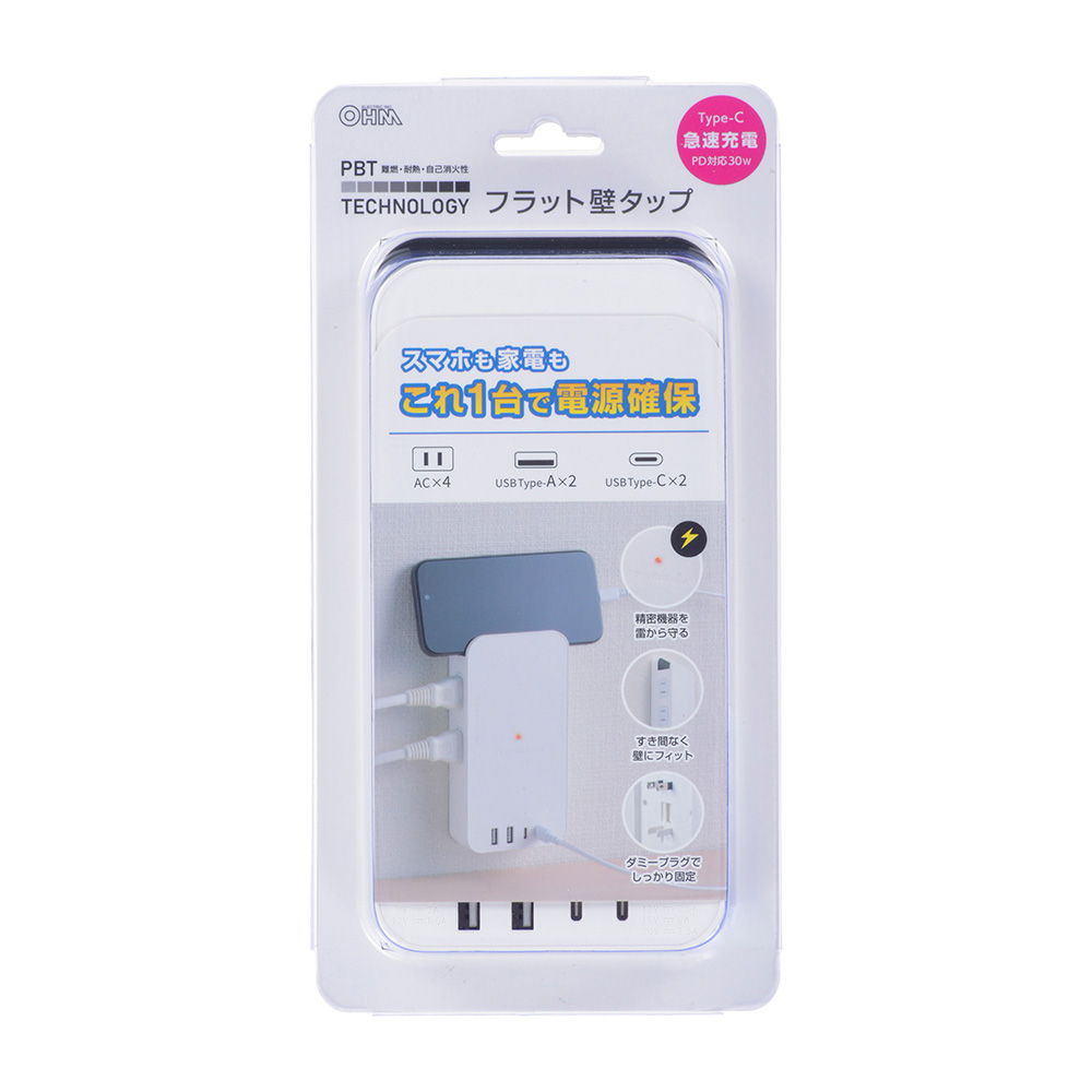 フラット壁タップ PD対応30W 4個口 白 [品番]00-1080