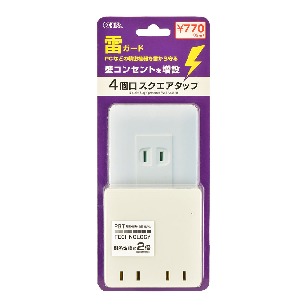 雷ガード付き4個口スクエアタップ 白 [品番]00-1766