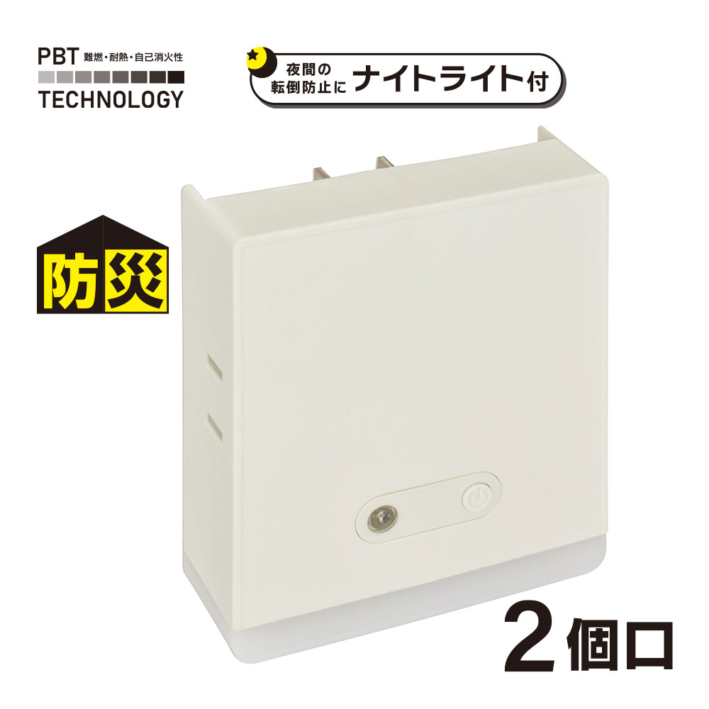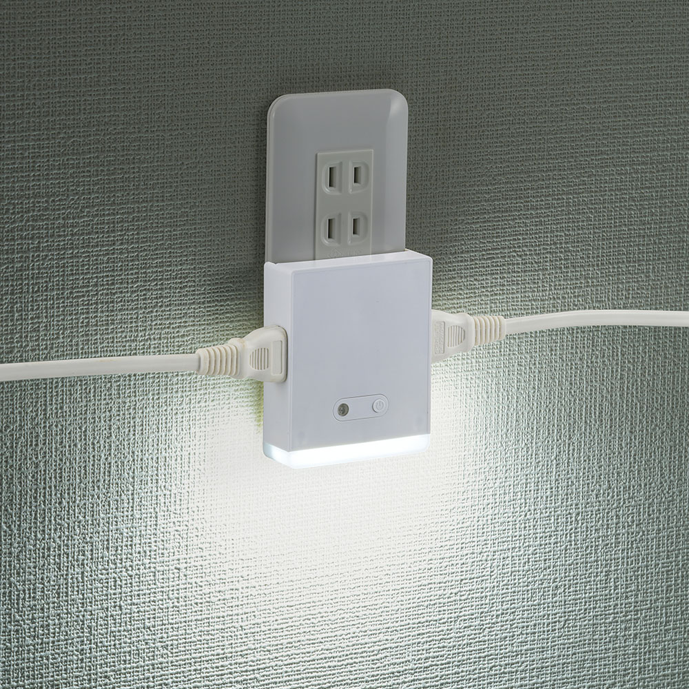 - ナイトライト付き2個口スクエアタップ 白 [品番]00-1767