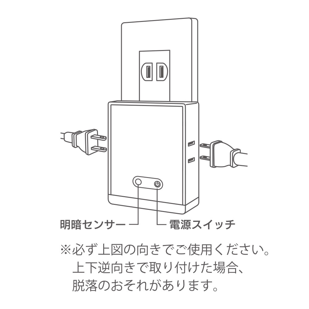 - ● 明暗センサー付きナイトライト(周囲が暗くなると自動点灯、明るくなると自動消灯)
