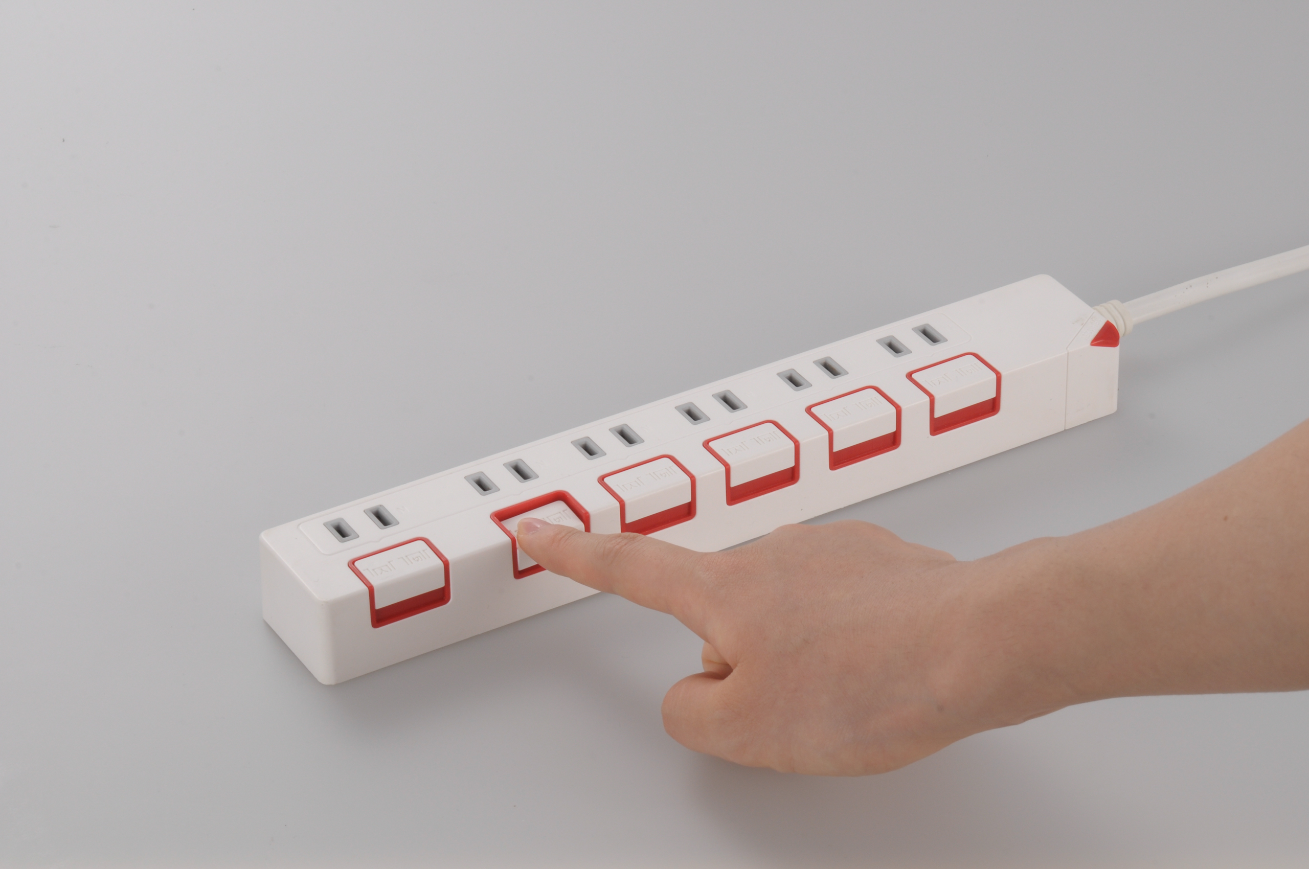 - 押しボタンスイッチ付き節電タップ 6個口 2.5m [品番]00-1180