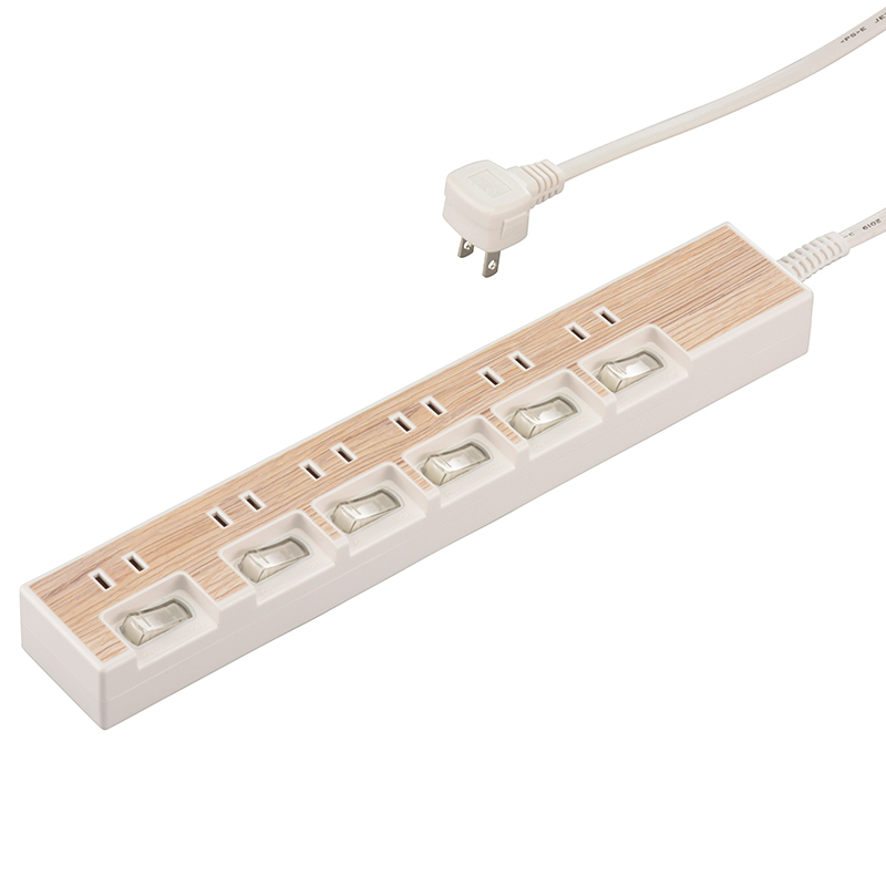 - 節電タップ 6個口 1.5m 木目調ホワイト [品番]00-5018