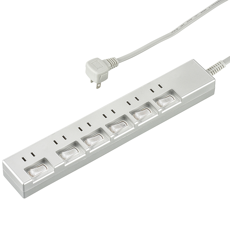 節電タップ 6個口 1m シルバー [品番]00-5765