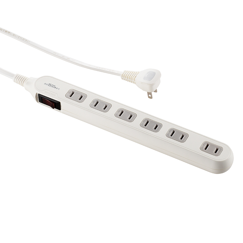 - ブレーカースイッチ付スリムタップ 6個口 1.5m [品番]00-1871