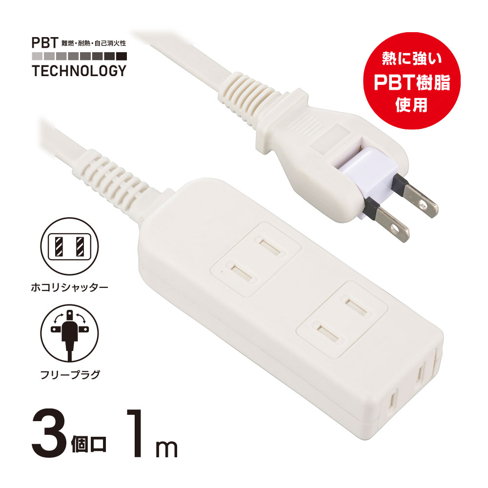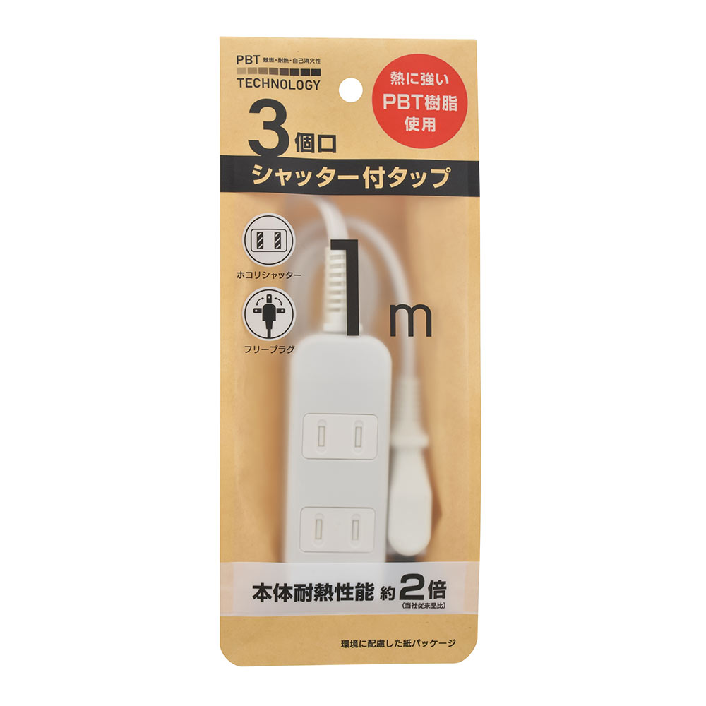 シャッター付きタップ 3個口 1m [品番]00-1550