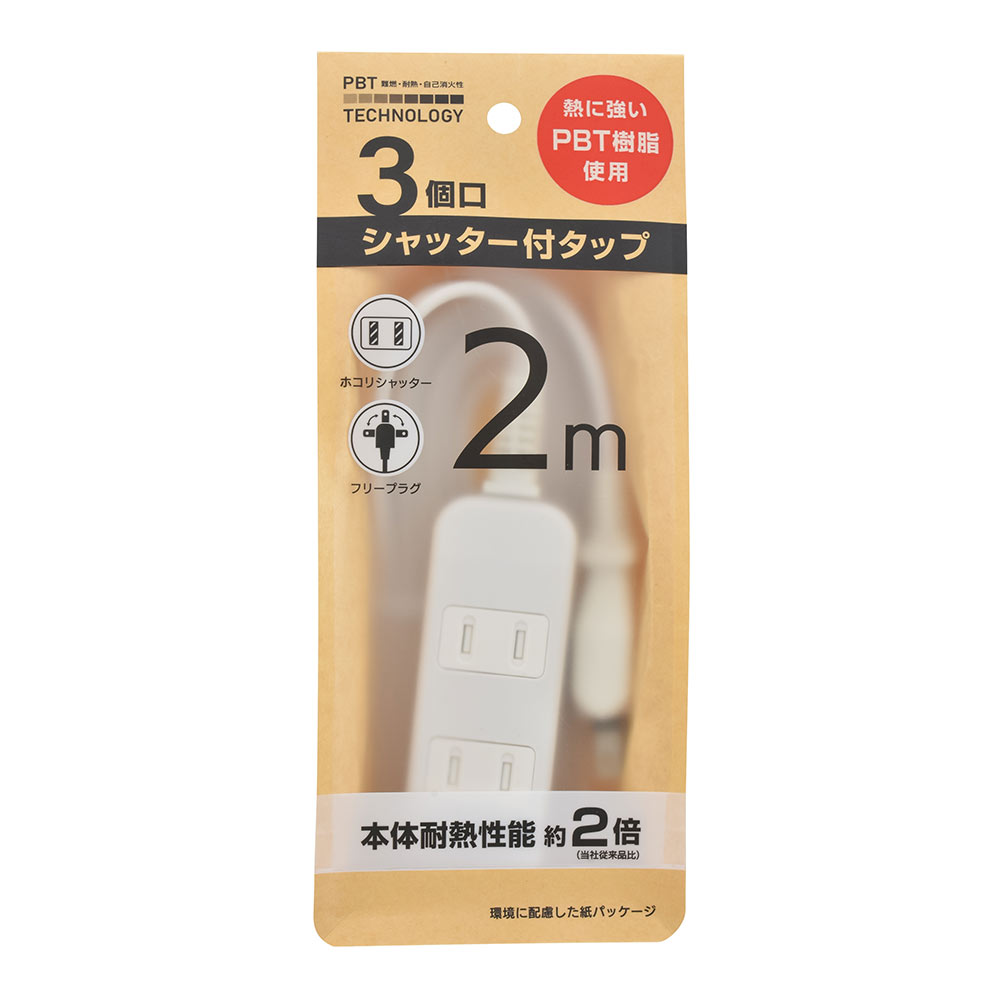 シャッター付きタップ 3個口 2m [品番]00-1551