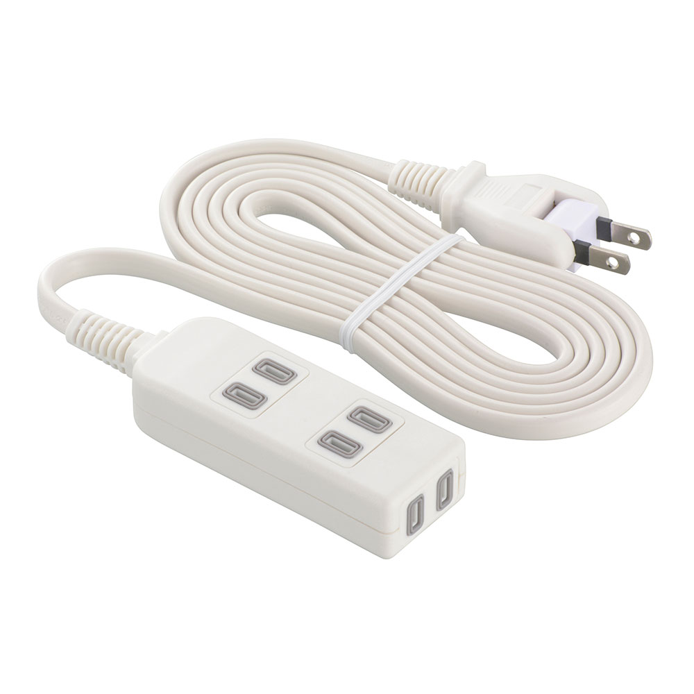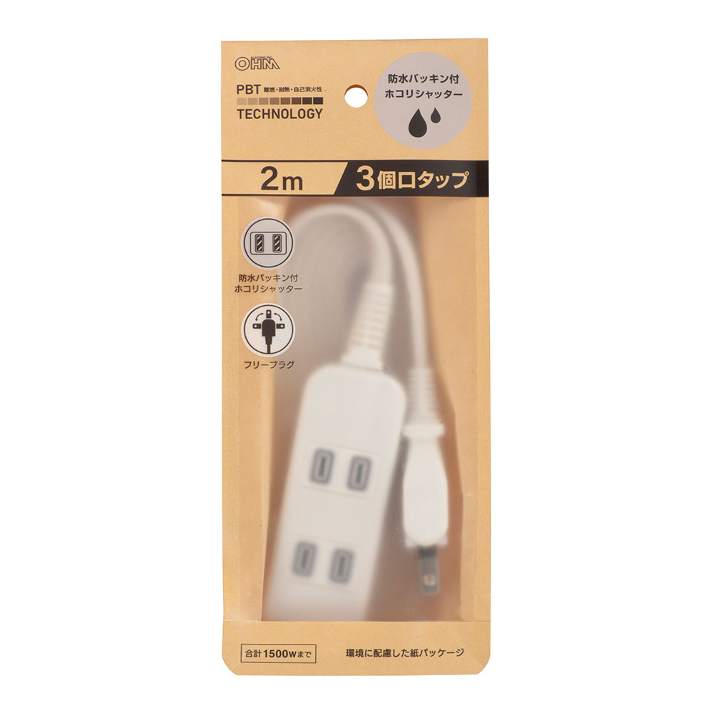 防水パッキン付きホコリシャッタータップ 3個口 2m 白 [品番]00-1637