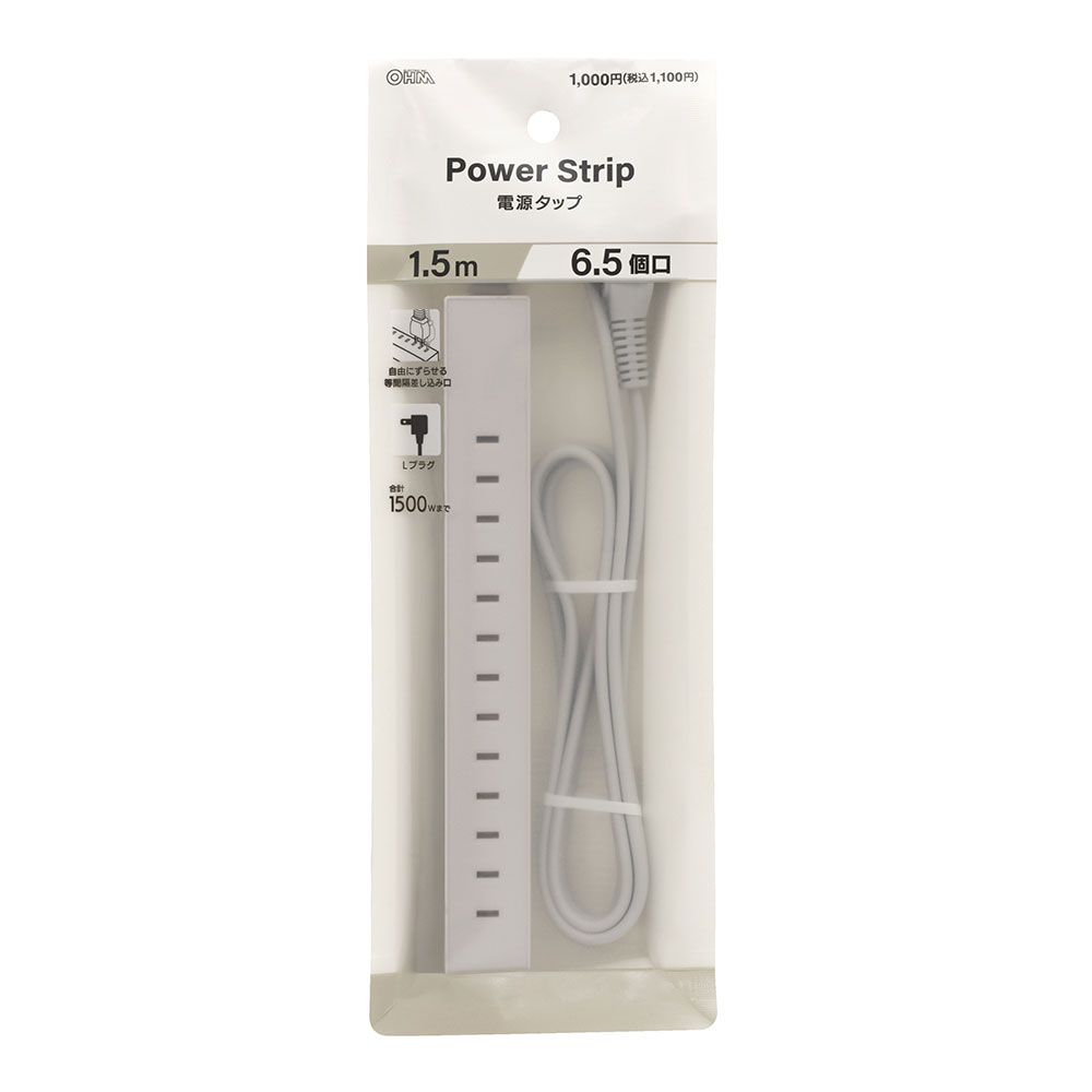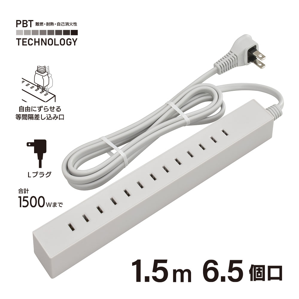 - 電源タップ 6.5個口 1.5m グレー [品番]00-1670