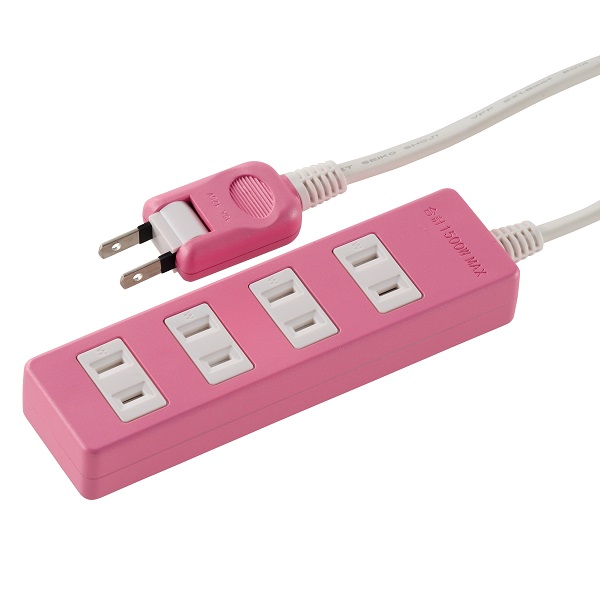 - カラータップ 4個口 2m ピンク [品番]00-1423