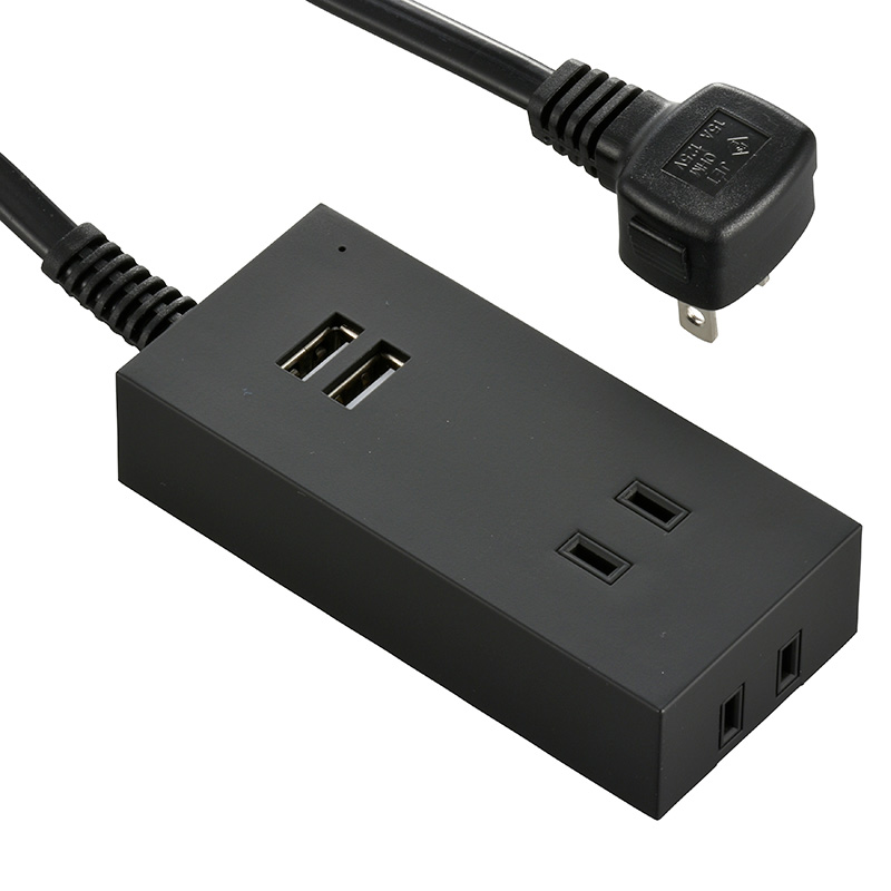 - USBポート付安全タップ 2個口 1.5m 黒 [品番]00-4399