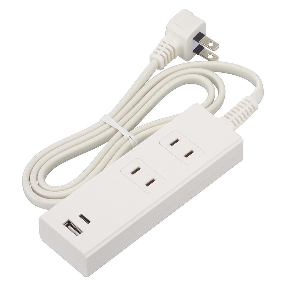 - 2個口タップ PD対応Type-C/Type-Aポート付き 1m ホワイト [品番]00-1001