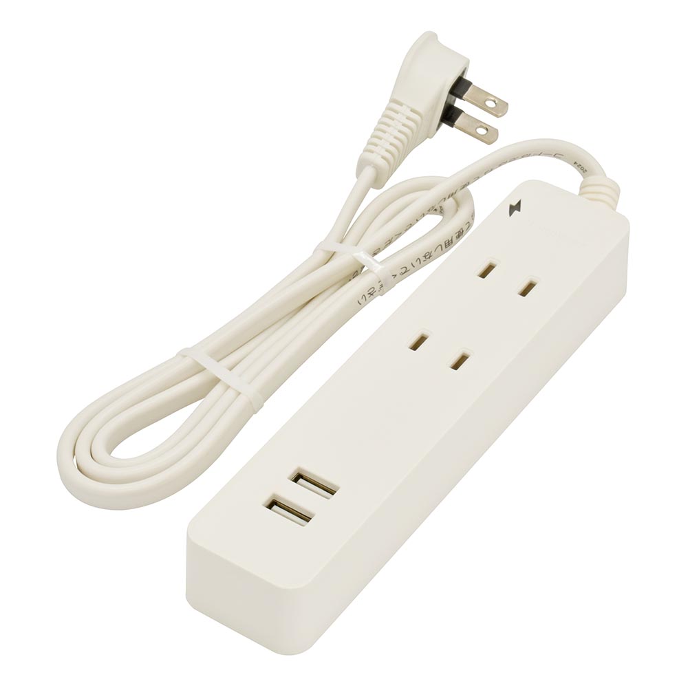 2個口タップ 雷ガード/USBポート付き 1m [品番]00-1655