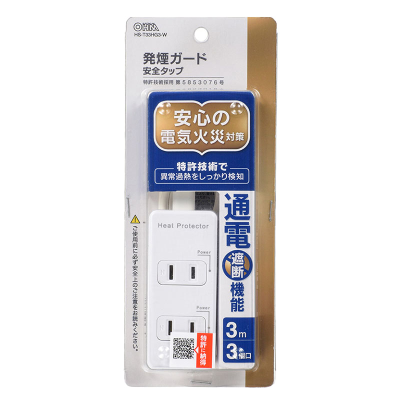 - 発煙ガード安全タップ 3個口 3m [品番]00-2256