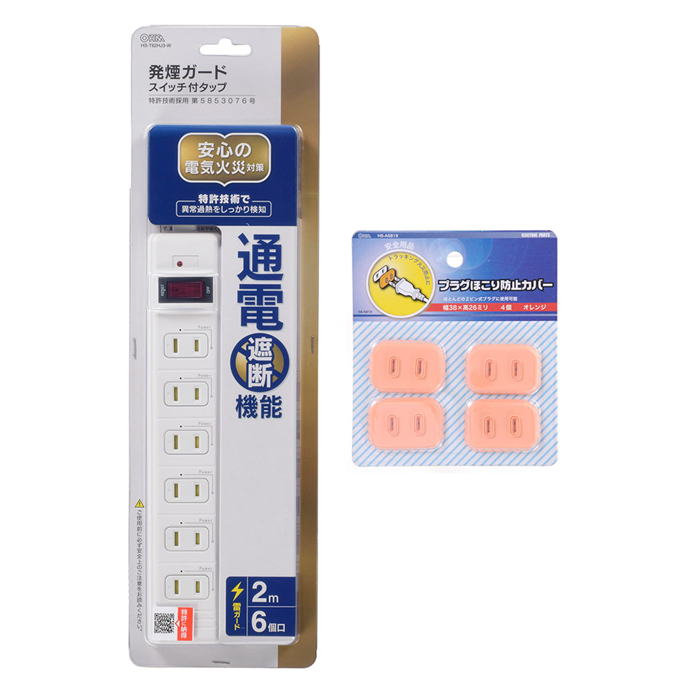 - ● 電源タップ発煙ガード6個口とプラグほこり防止カバーのセット品です。
