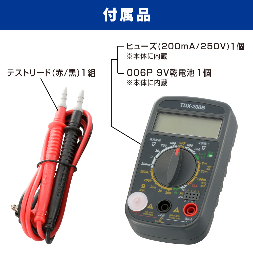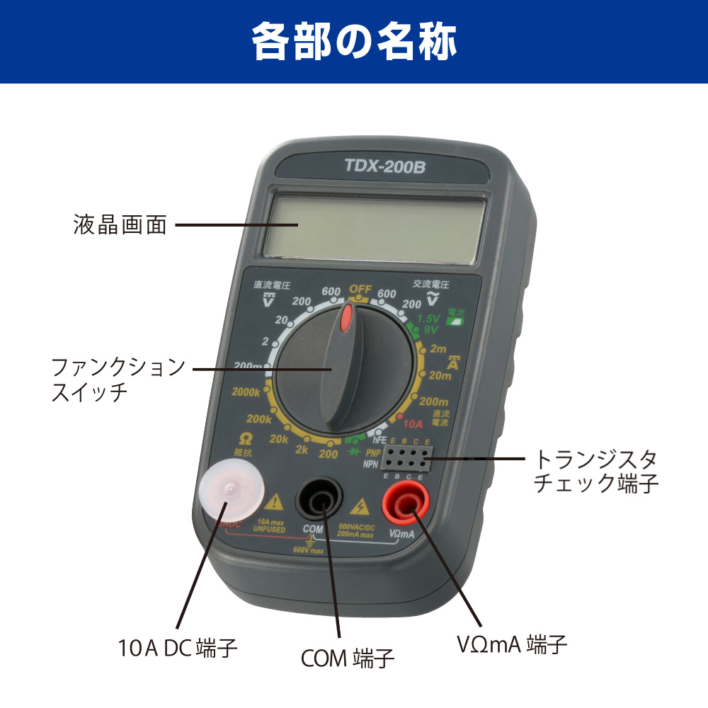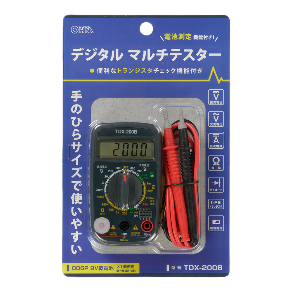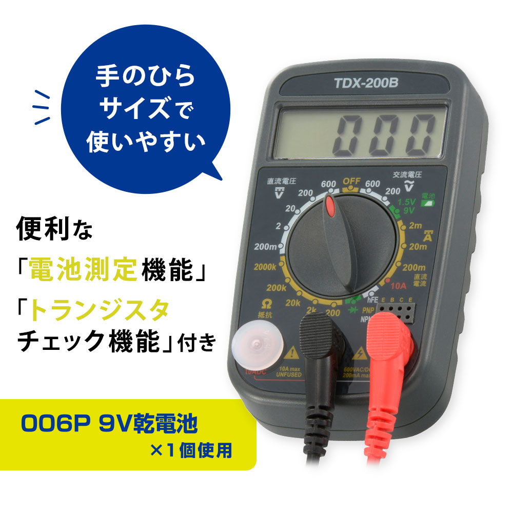 - ● 便利な「電池測定機能」「トランジスタチェック機能」付き