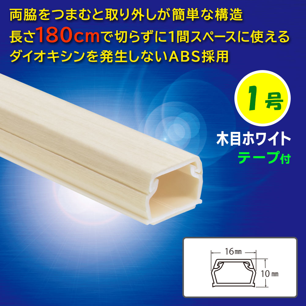 テープ付ABSモール 1号 1.8m 木目ホワイト [品番]09-2871